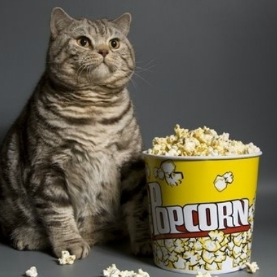 cat eating popcorn